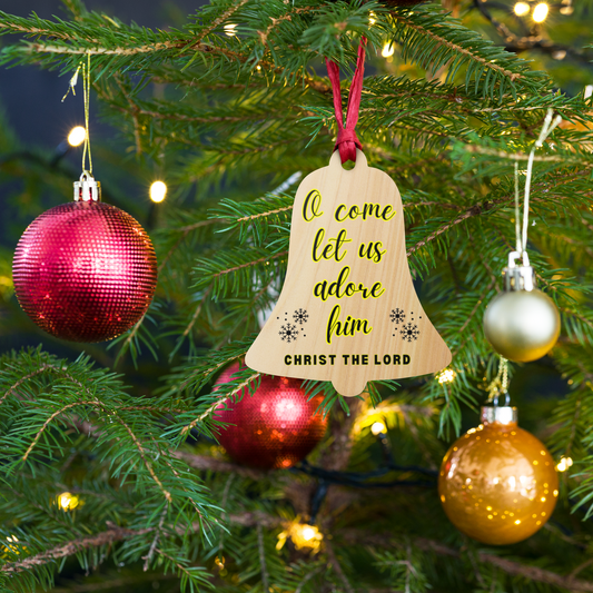 Christmas Bell Wooden Ornament - O Come Let Us Adore Him