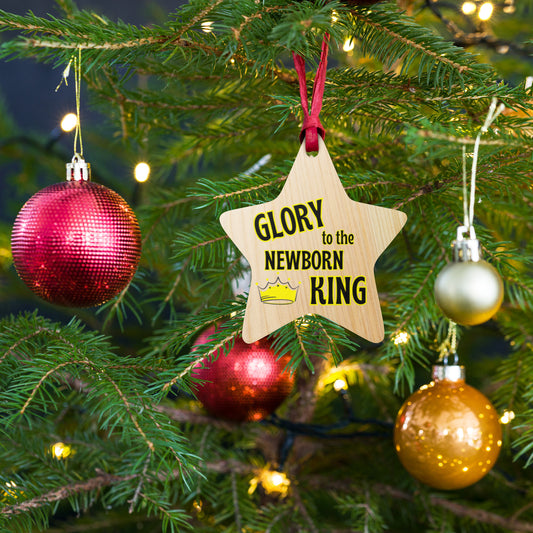 Christmas Star Wooden Ornament – Glory to the Newborn King